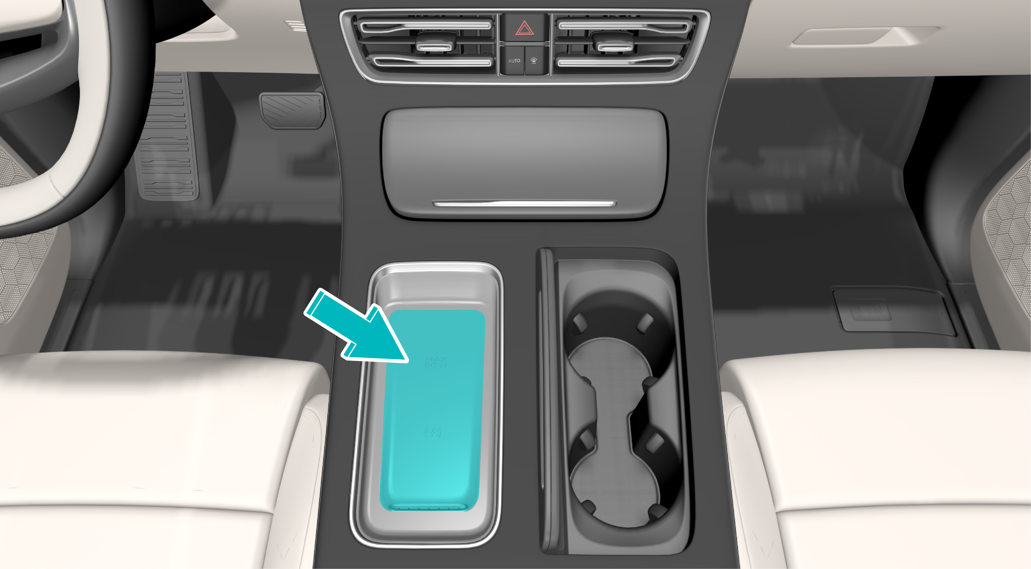 使用无线充电功能,您可以在车辆上电时为手机充电。使用前需要确保您的手机具备无线充电功能。