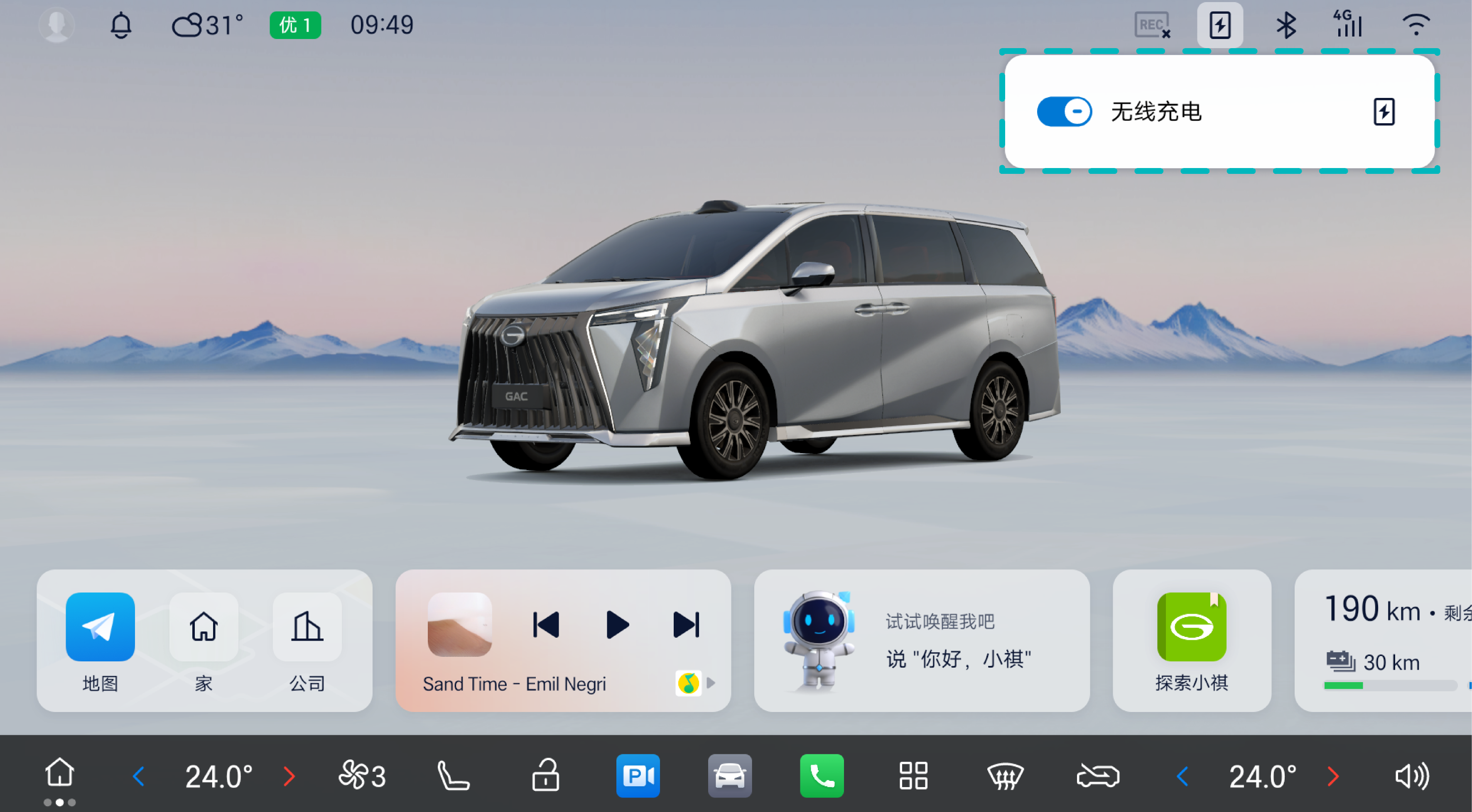 手机无线充电系统出现故障时,请停止使用并及时前往广汽传祺授权服务中心进行检修。
