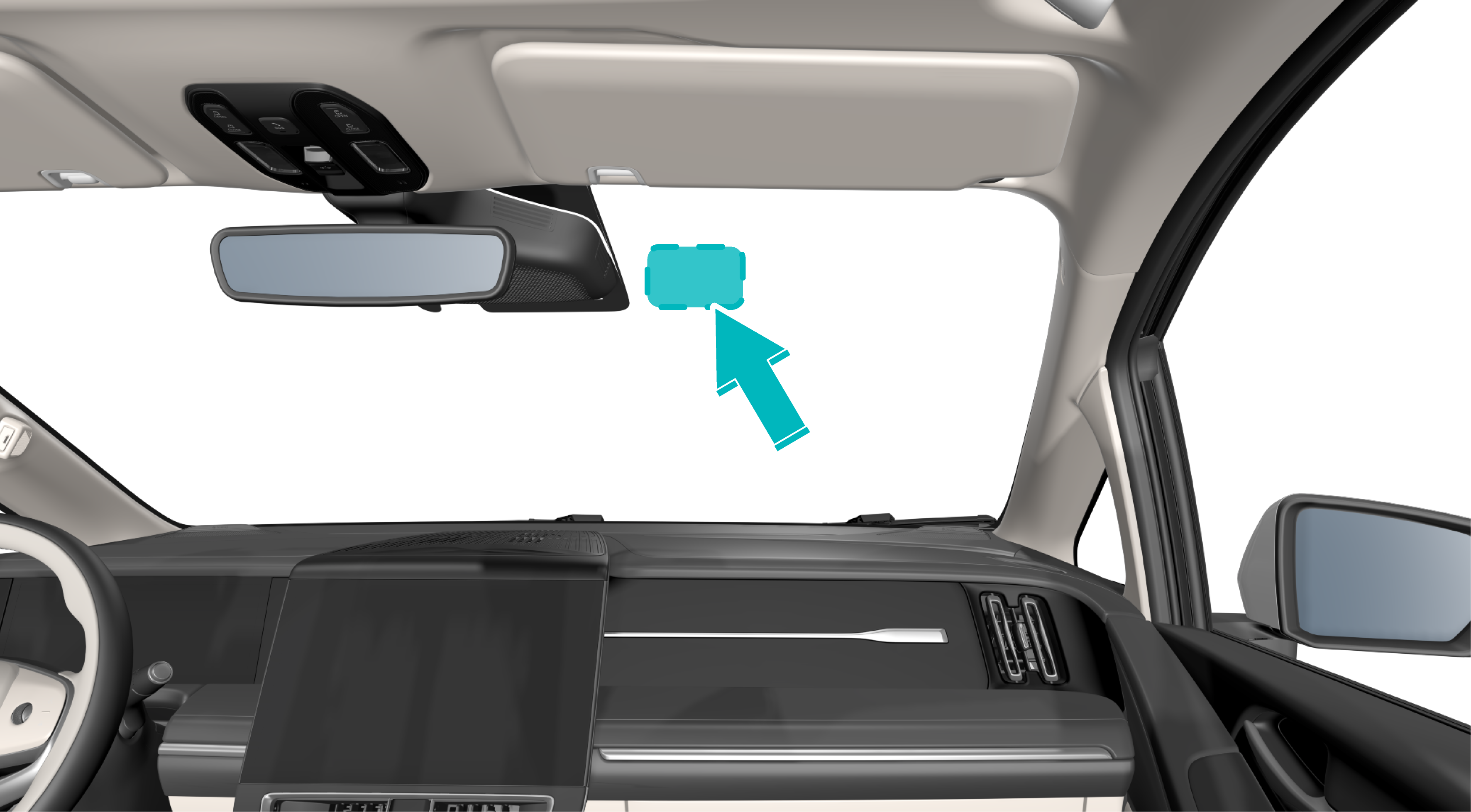 微波窗口设置在车内后视镜对应的前风窗玻璃靠右位置。