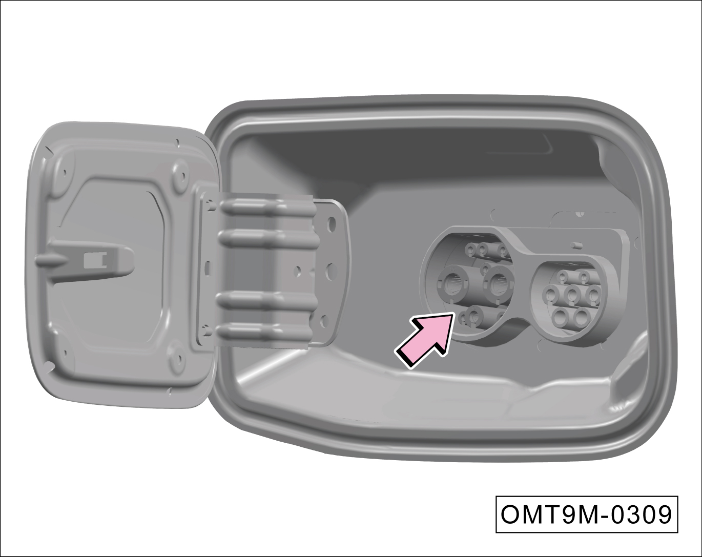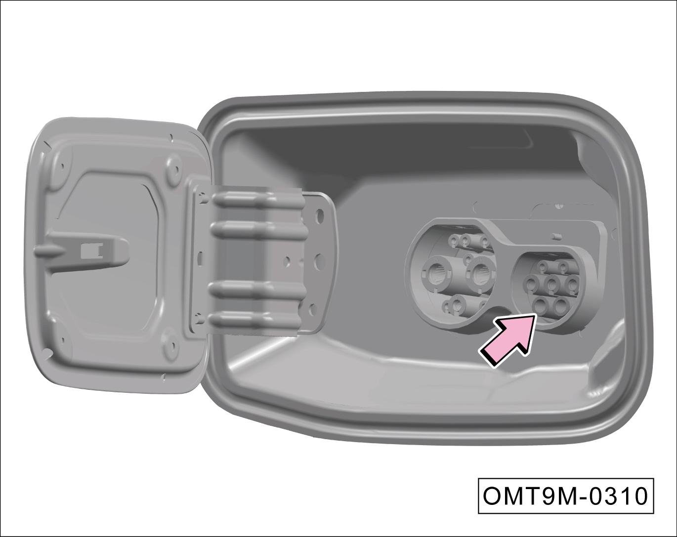 当通过车内按键无法打开充电口盖板时,可通过手动应急解锁,开启充电口盖板。
