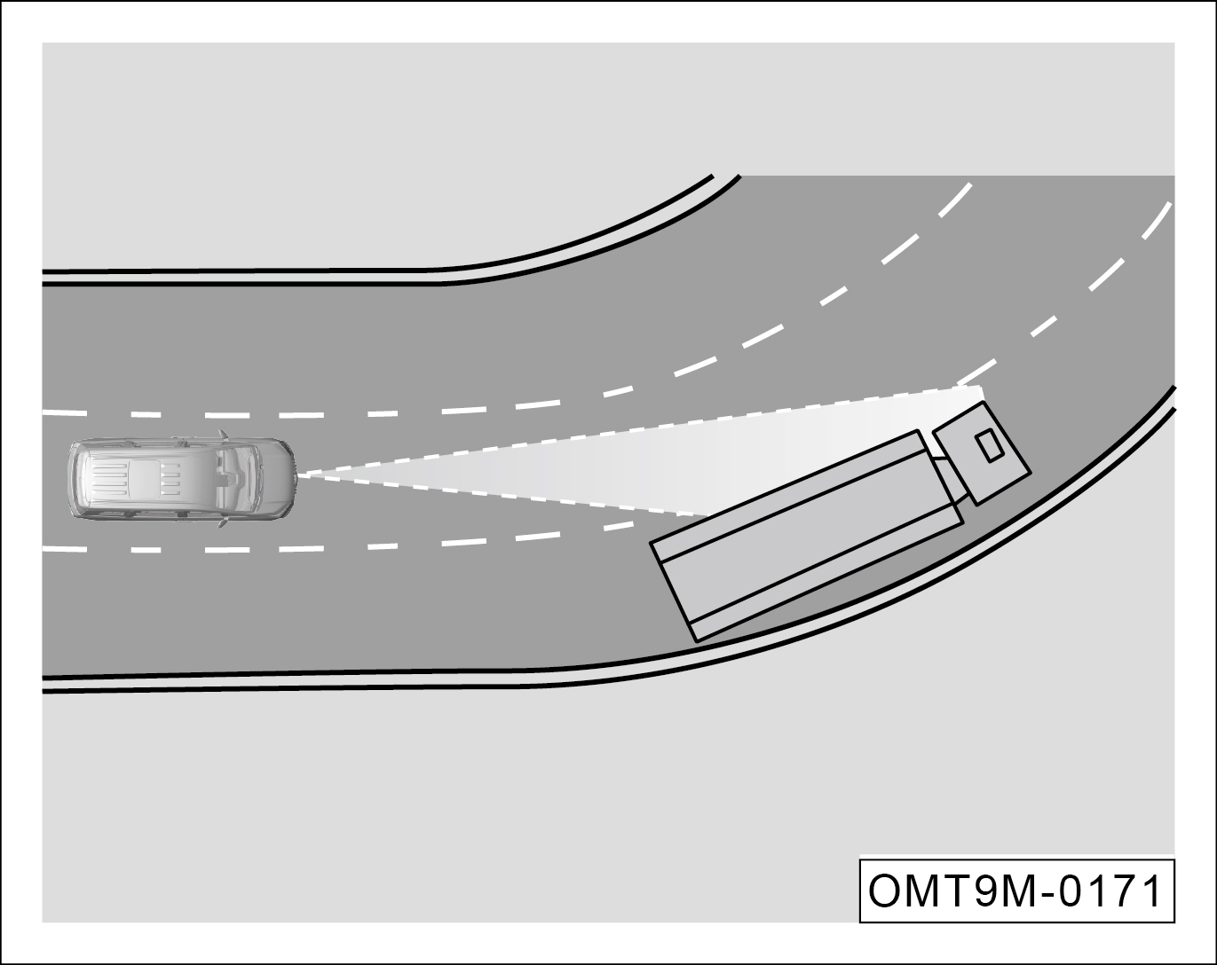 驶出弯道。驶出长弯道时,因为系统将预先计算行车道,所以毫米波雷达传感器可能会对相邻车道上的车辆作出反应而对本车制动。此制动过程可通过踩下加速踏板来中断。
