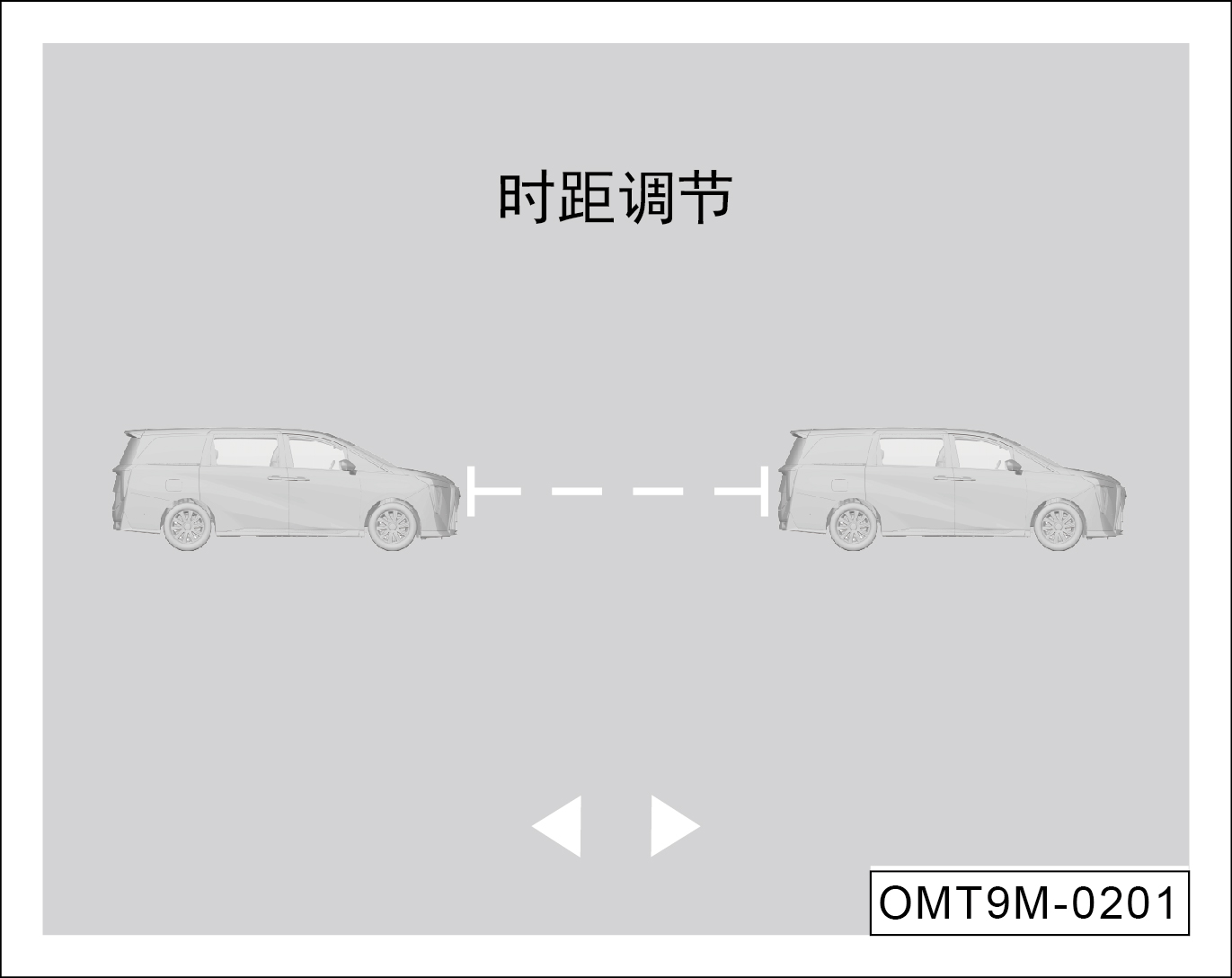 键,可切换与前车距离的挡位,按一次切换一挡,切换顺序分别是“第一挡→第二挡→第三挡→第四挡”,“第四挡→第三挡→第二挡→第一挡”。同时,组合仪表显示屏中将显示与挡位数量相同的横条。