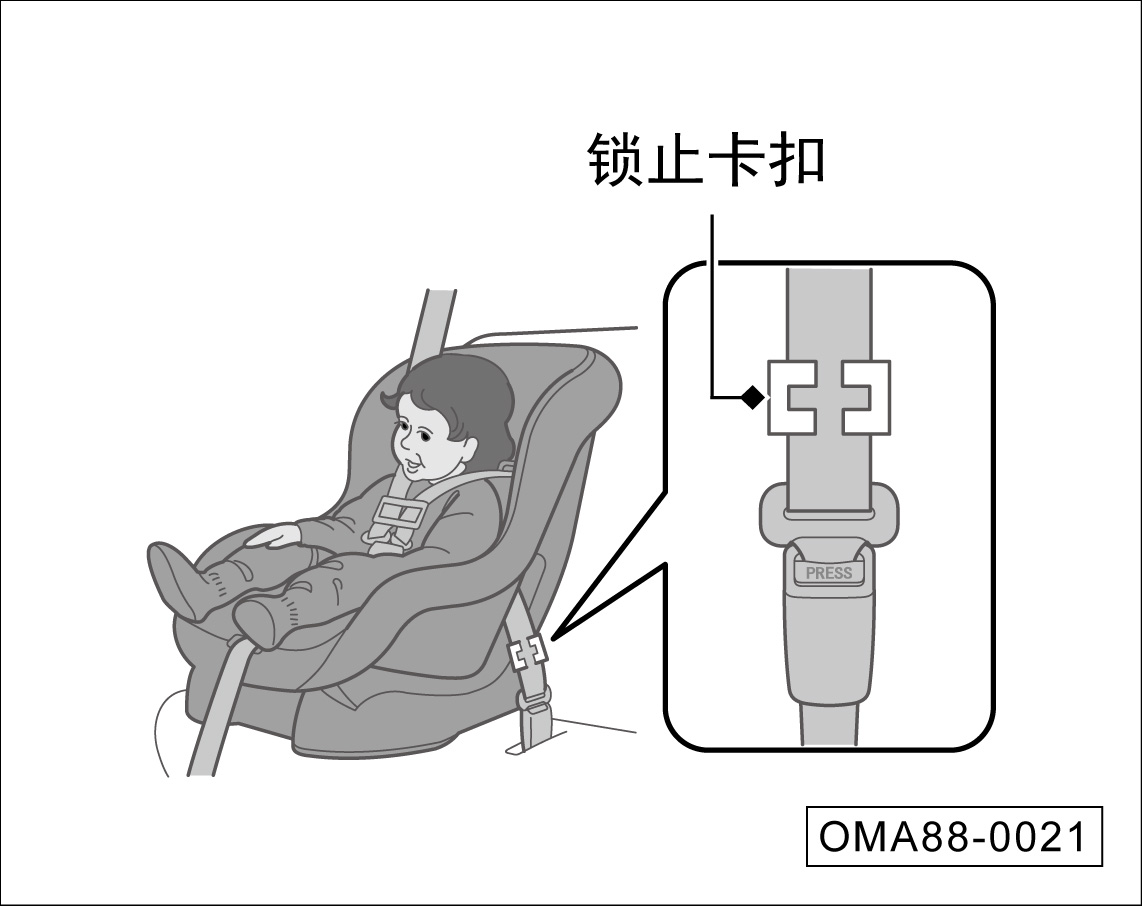 如果儿童安全座椅没有固定安全带的装置,请在安全带上安装一个锁止卡扣。