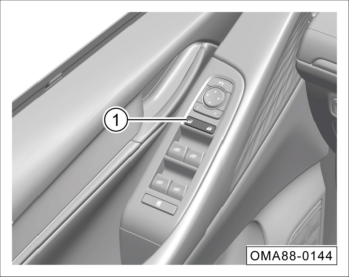 中央门锁按键①可以在车内闭锁和解锁车门:
