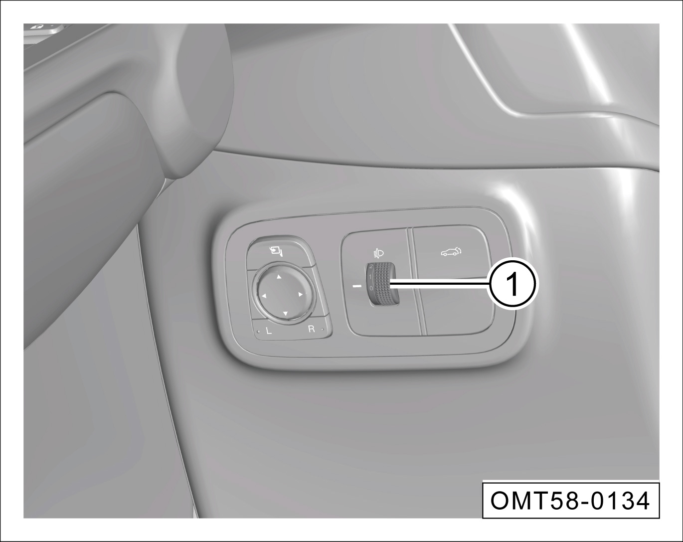 旋转旋钮①手动调节前大灯(近光灯)照程,调节挡位有“0、1、2、3”挡。灯光的高度会随着调整数值的增大而变低。