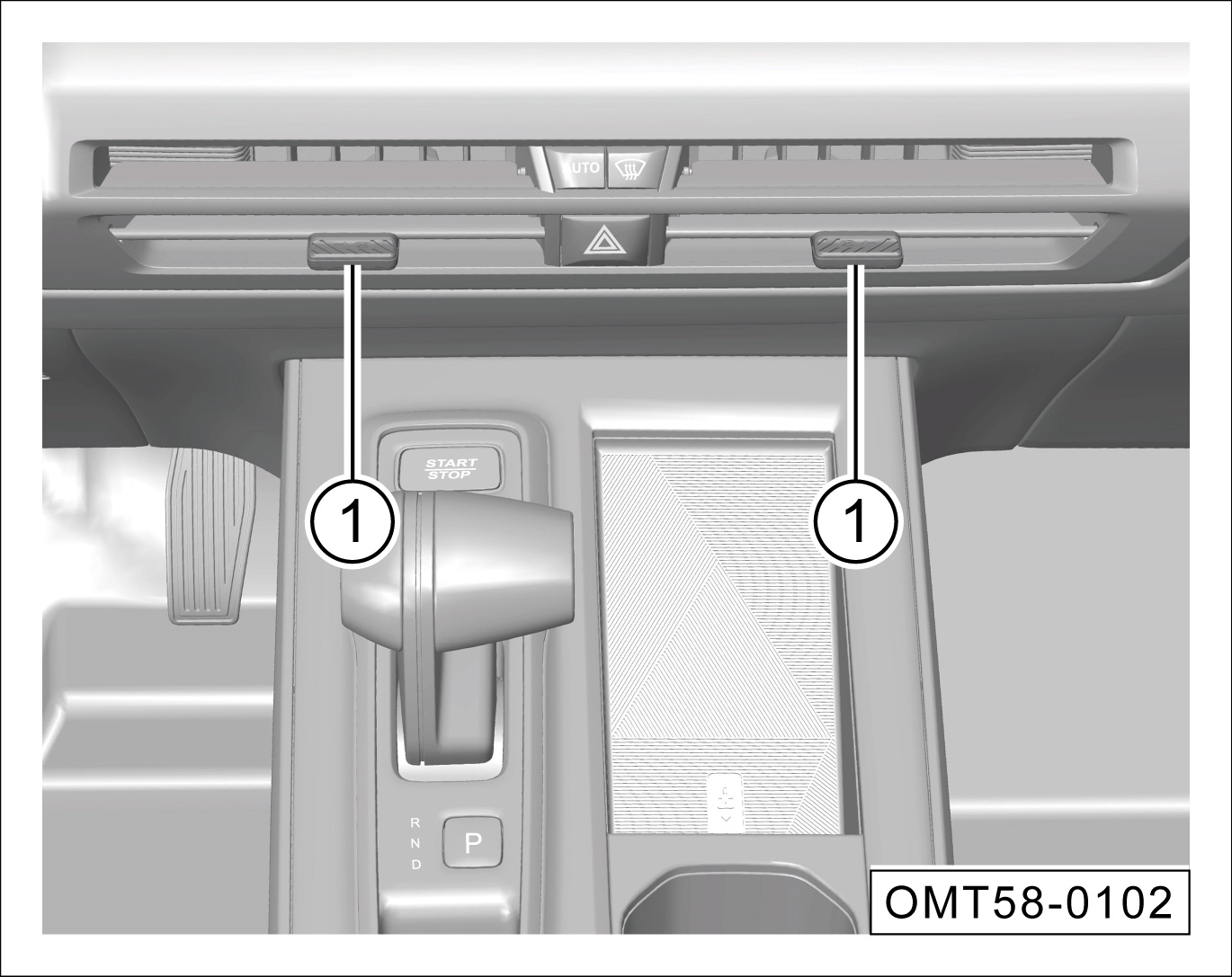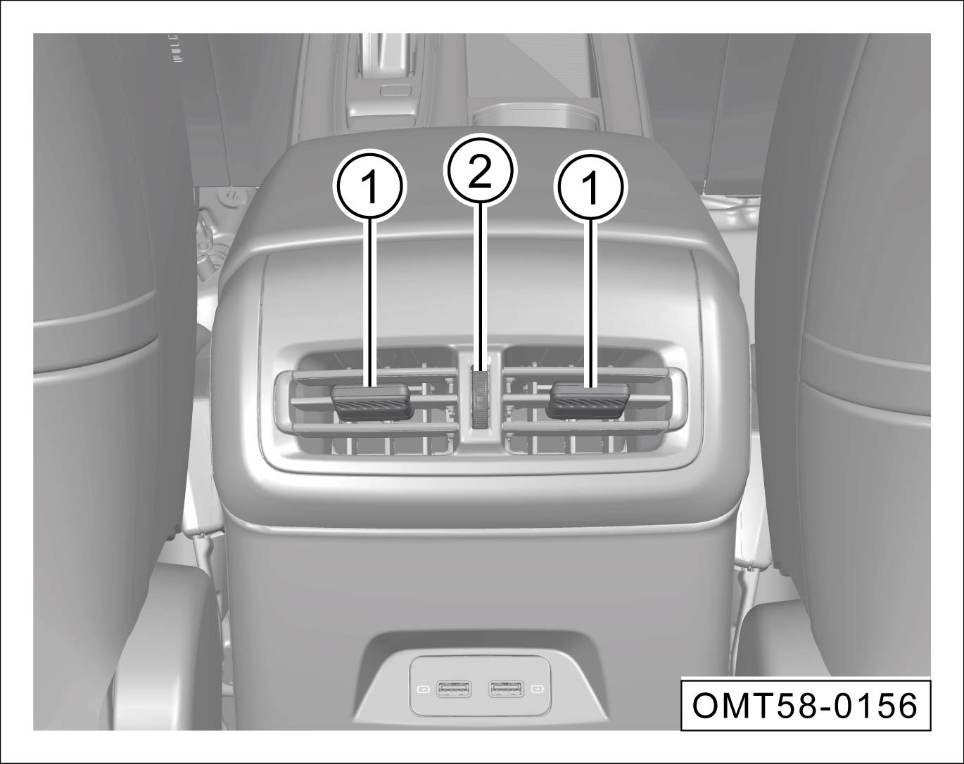 旋转旋钮②,可调节风量大小,或关闭出风口。