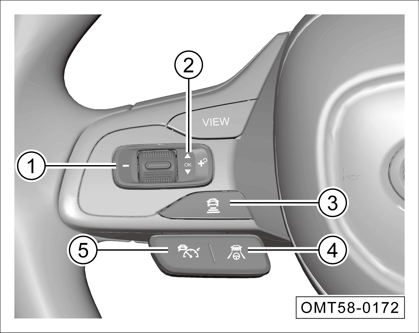 键,可切换与前车距离的挡位,按一次切换一挡,以“第四挡→第三挡→第二挡→第一挡→第四挡……”的顺序循环切换。同时,组合仪表显示屏中将显示与挡位数量相同的横条。