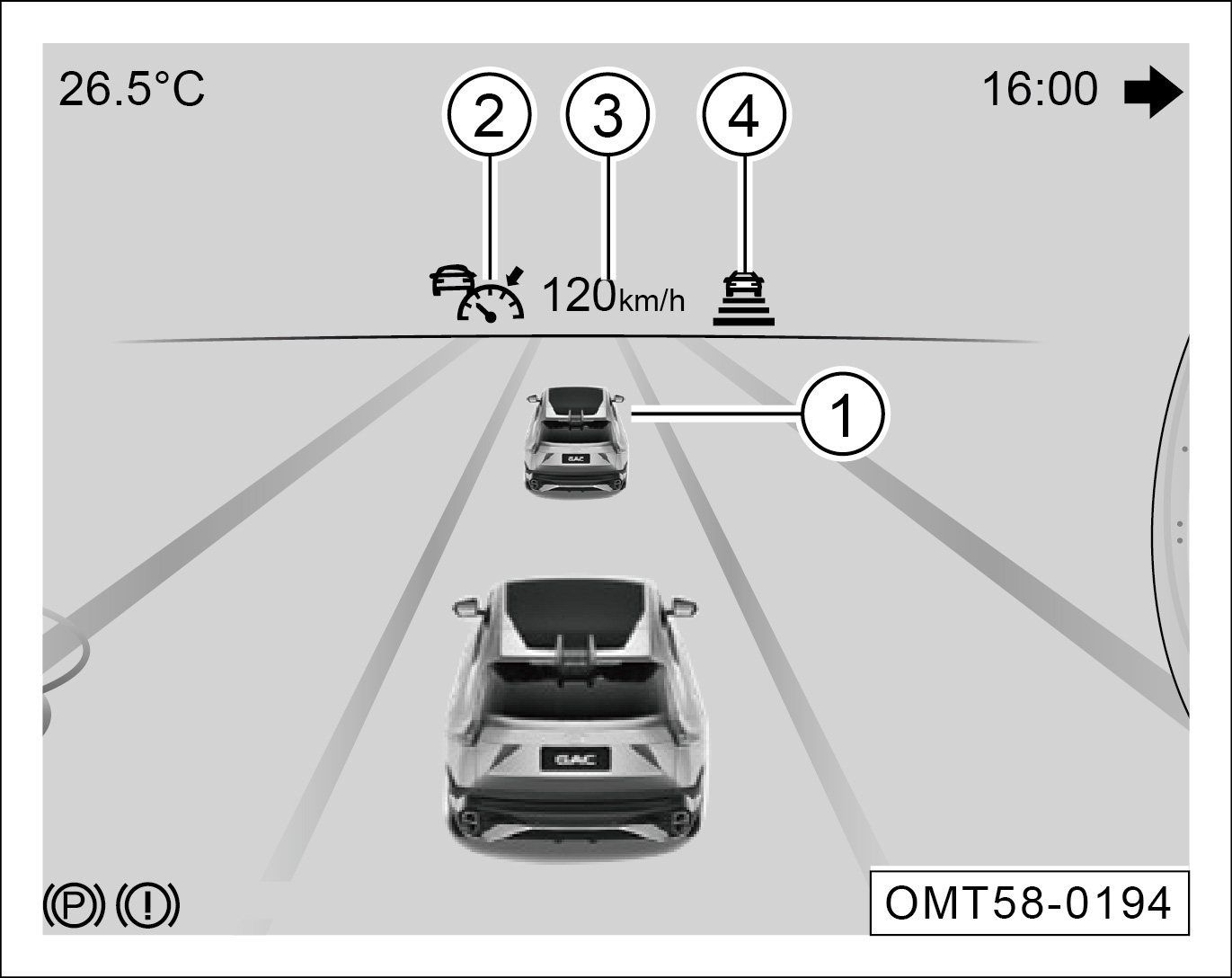 整车电源切换到“ON”挡后,系统开启时默认与前车时距为第四挡(四挡跟车距离最远)。
