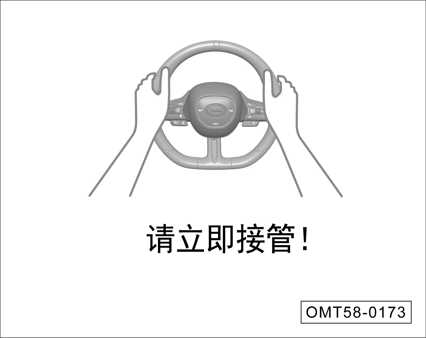 当ICA监测到驾驶员较长时间双手脱离方向盘时,系统将发出接管提示,组合仪表显示上图并伴随蜂鸣器鸣响。