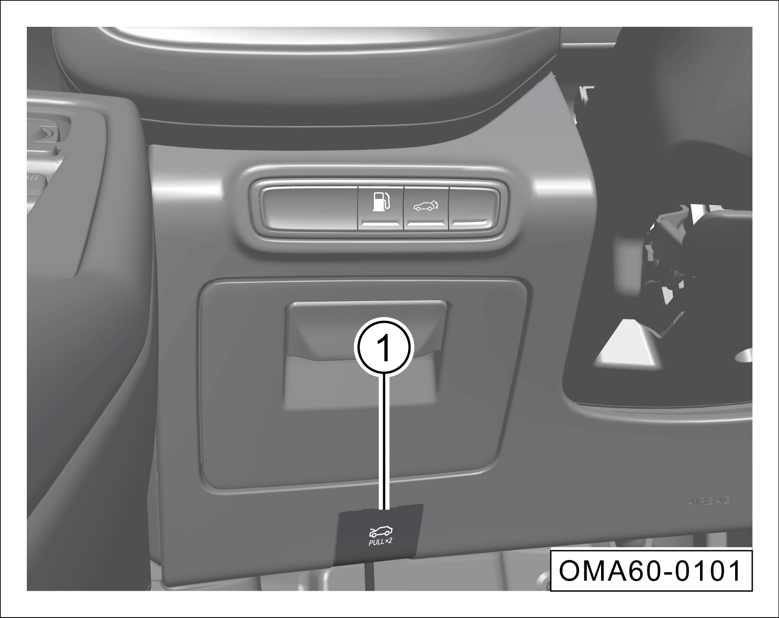 拉动驾驶员侧仪表板下方前机舱盖开启拉手①第一次,前机舱盖轻微弹起进入到半解锁状态。