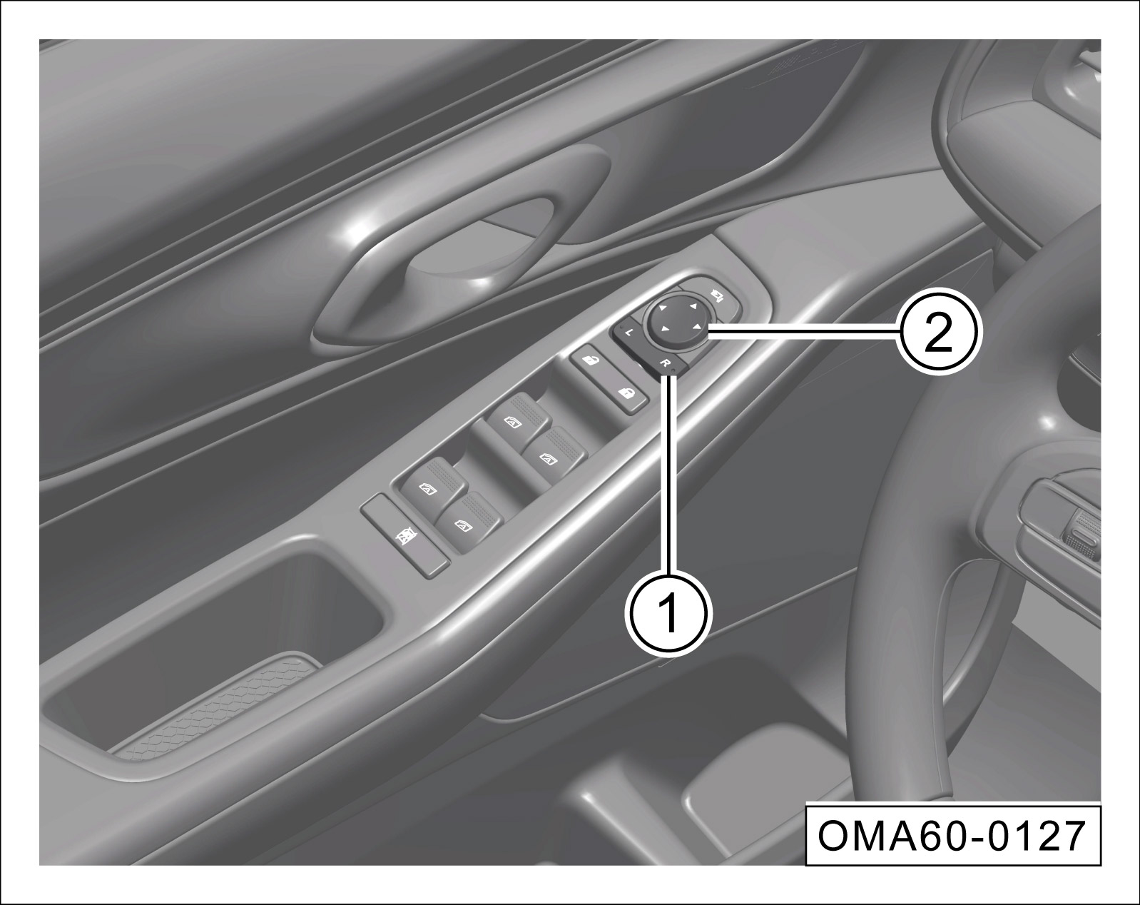 按选择键①的“L”端或“R”端,选择左侧或右侧外后视镜。