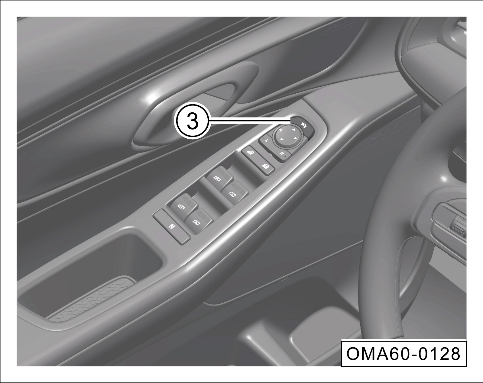 按调节按键②,调节选中的外后视镜至合适的后视角度。
