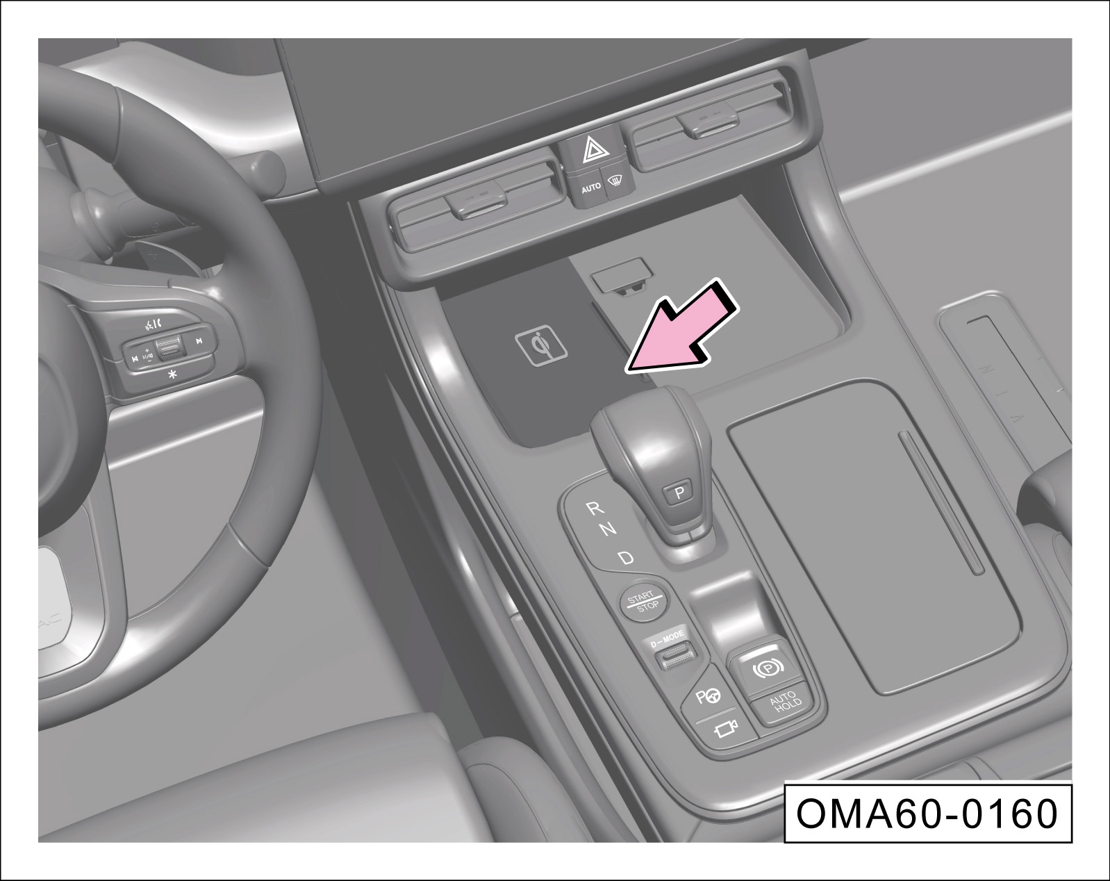 无线充电有效区域位于换挡杆前方的储物槽内,充电时请把手机充电线圈对准“Qi”标识,以保证手机的正常充电。