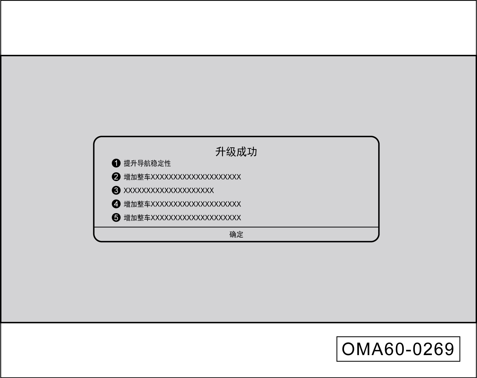 为保证安全,请不要做在升级过程中强行驾驶车辆或断开蓄电池等操作。