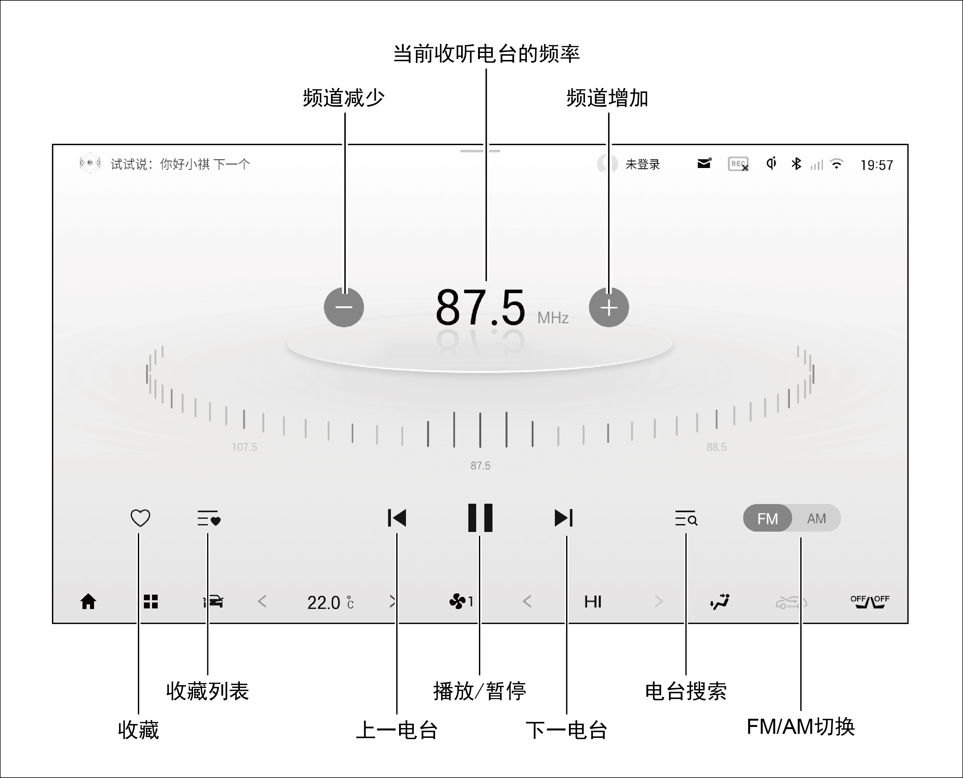 通过主界面点击“电台卡片”进入收音机播放界面。