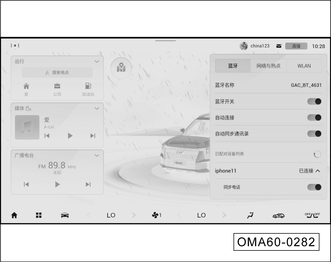 开启蓝牙功能后,车机会自动搜索周边的蓝牙设备。