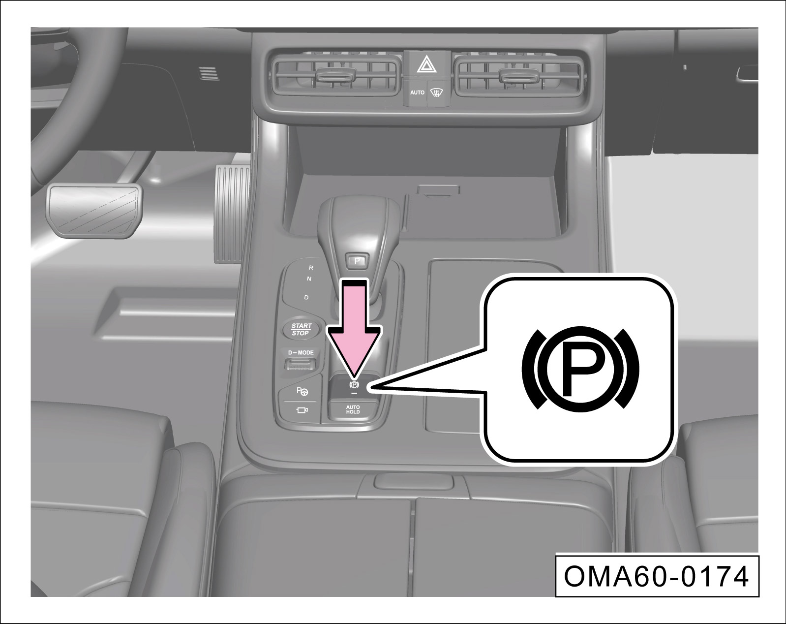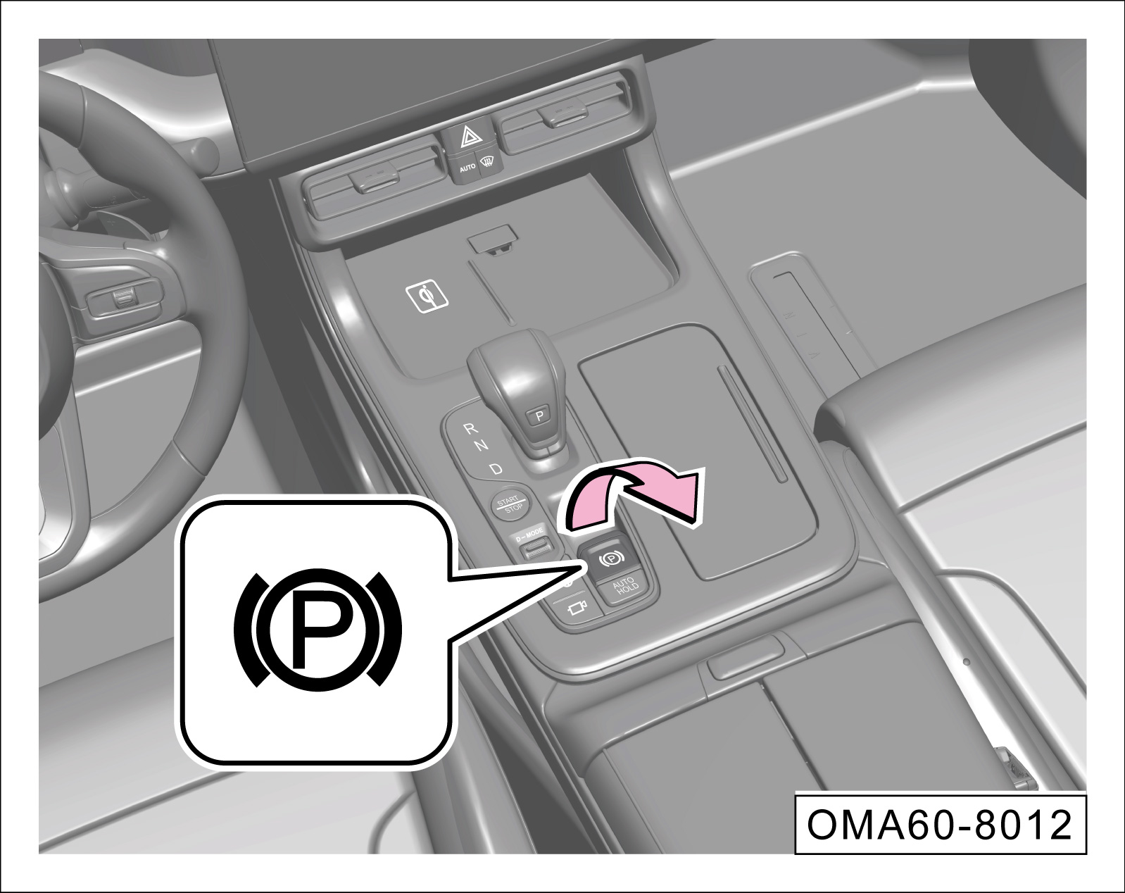 车辆静止时,沿-箭头-方向上提电子驻车制动系统按键,按键指示灯及组合仪表中