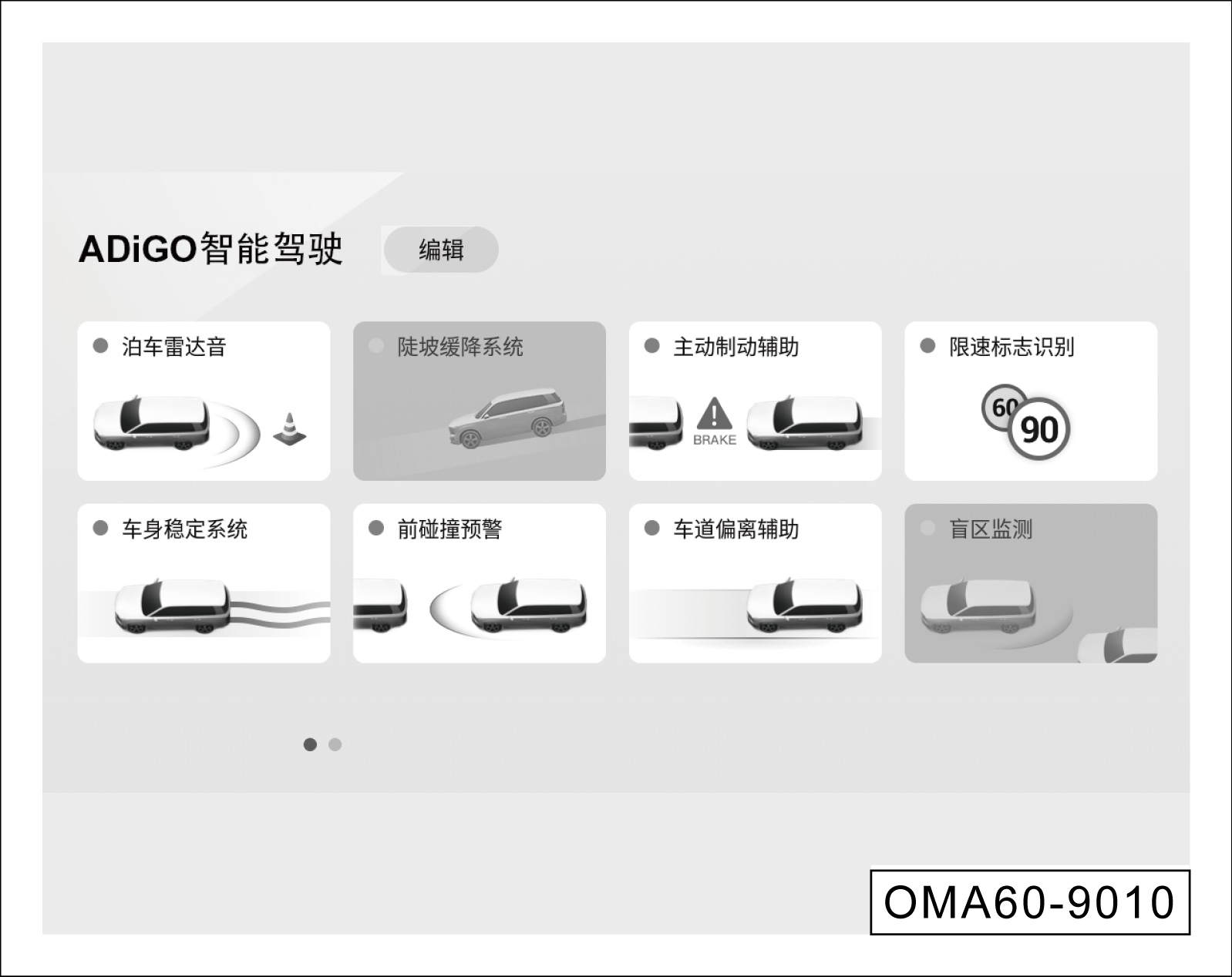 进入驾控面板,点击“陡坡缓降”软按键,下坡辅助(HDC)开启,系统工作时