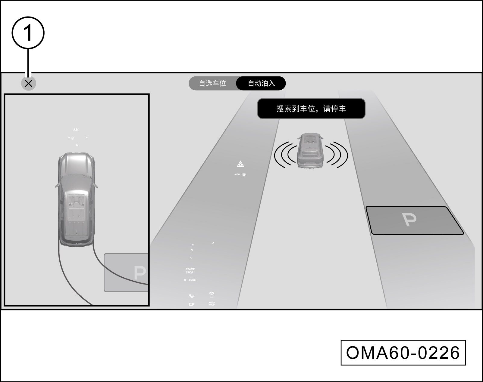 主机退出按键关闭:可通过按下主机左上角“×”按键①关闭融合泊车系统。