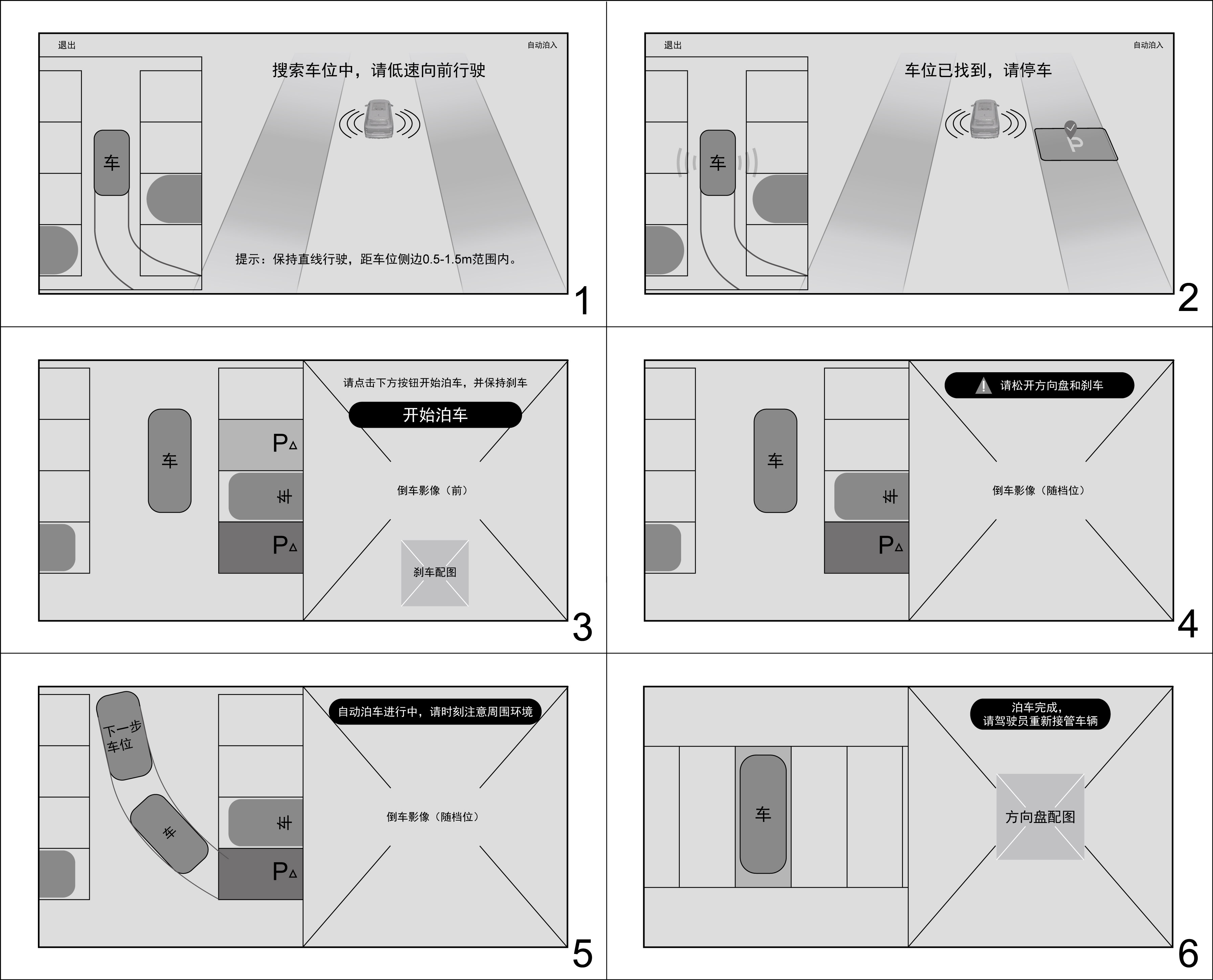 融合泊车系统通过车辆周围的超声波传感器和全景摄像头,自动搜索车辆左/右侧的停车位。当搜索到合适的停车位时,驾驶员按照车机屏幕提示停车、点击选择车位并点击泊车键,系统就可进入自动泊车模式。