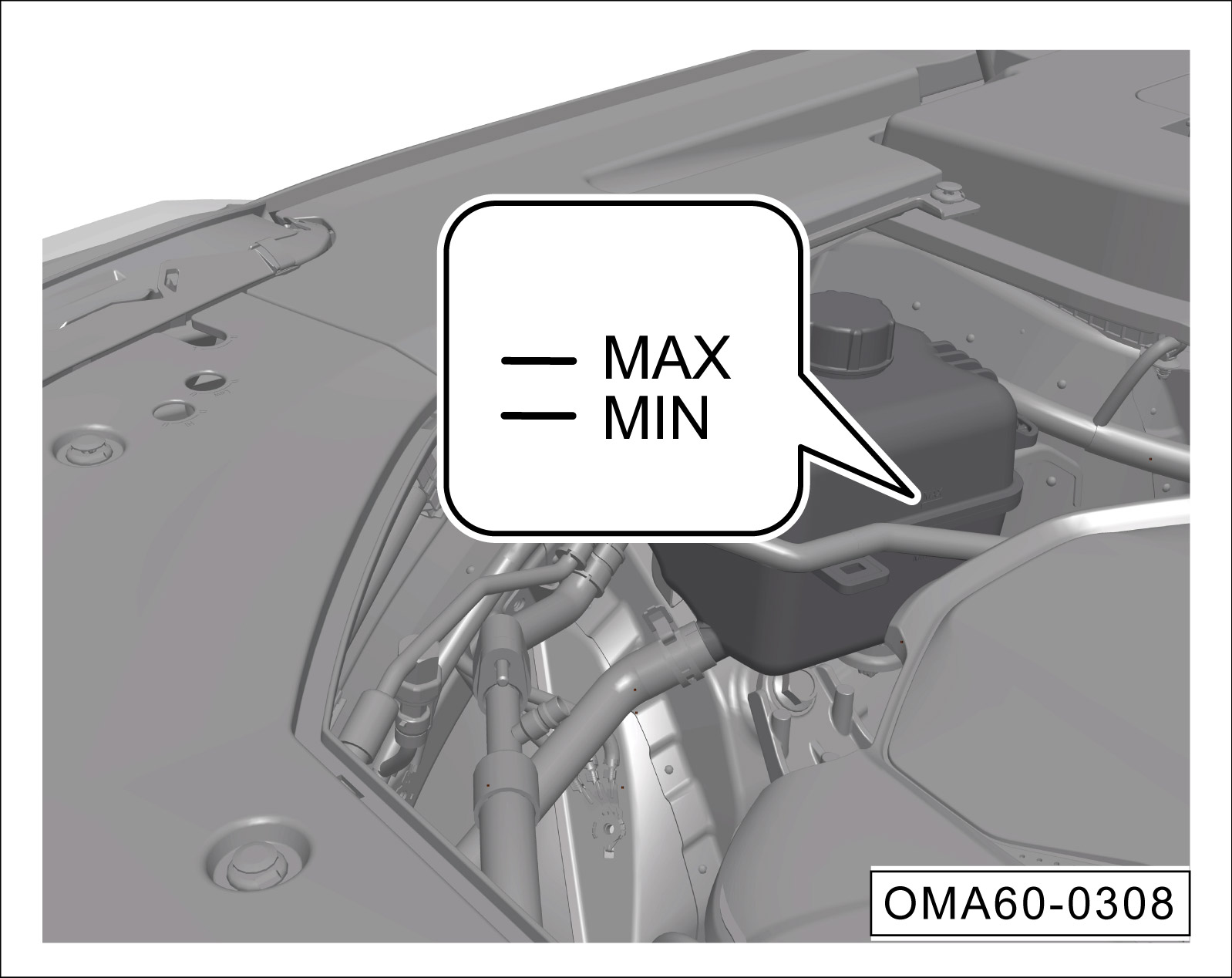 检查冷却液膨胀罐内的冷却液液位是否在上限标记“MAX”与下限标记“MIN”之间。