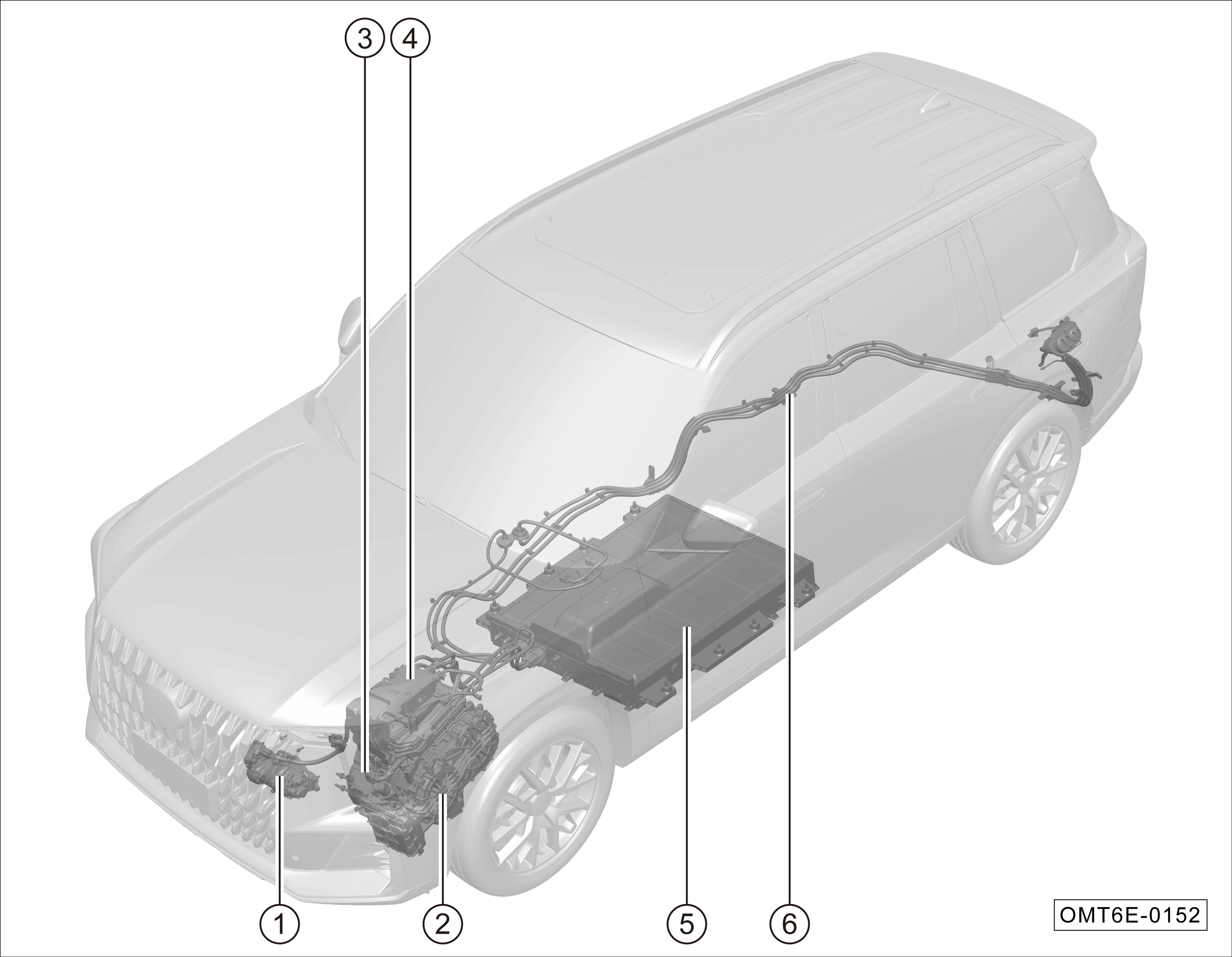 混合动力系统会使用高压电,因此启动后系统温度很高。应小心高压和高温,并始终遵守车辆警告标签上的警告。