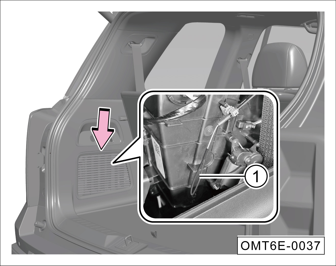 打开后背门,在-箭头-位置撬开行李箱左侧盖板。