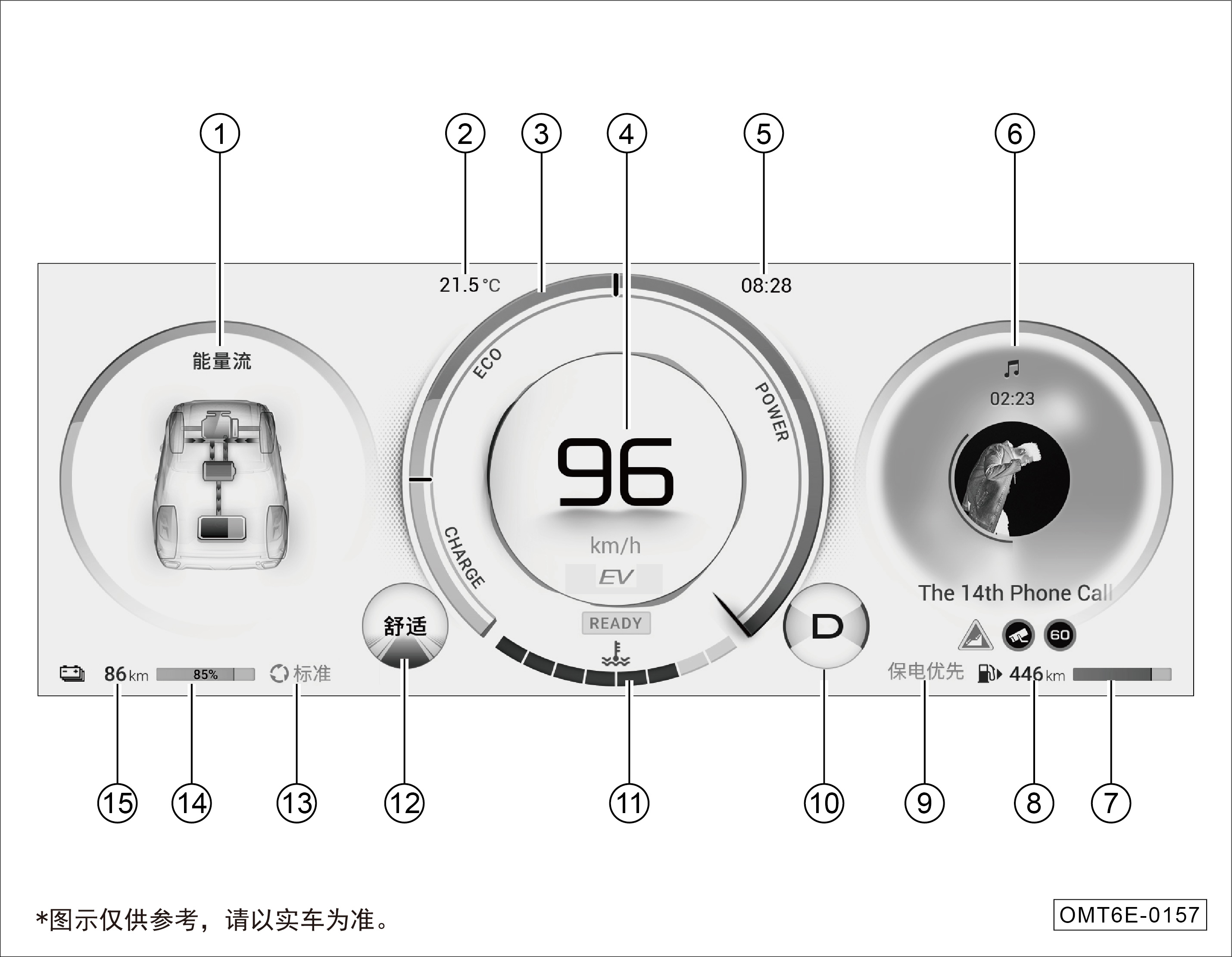 ⑥ 仪表右侧显示屏