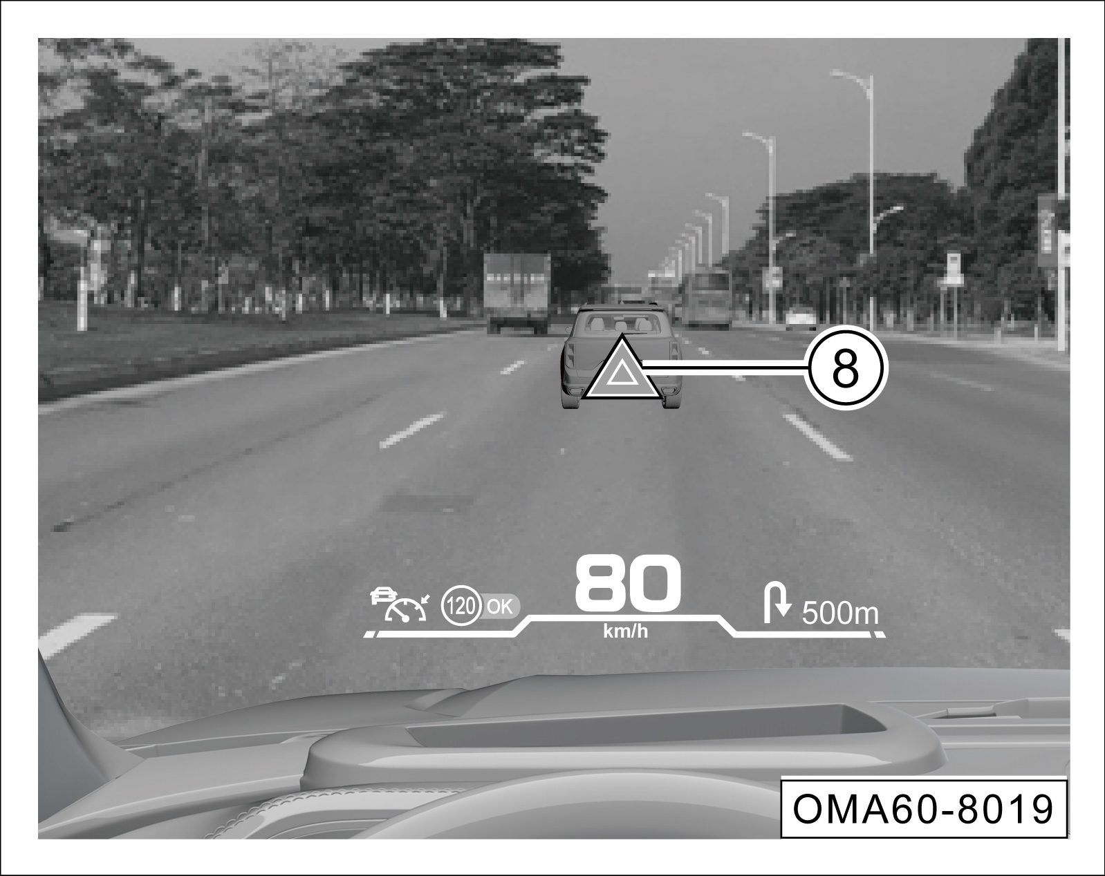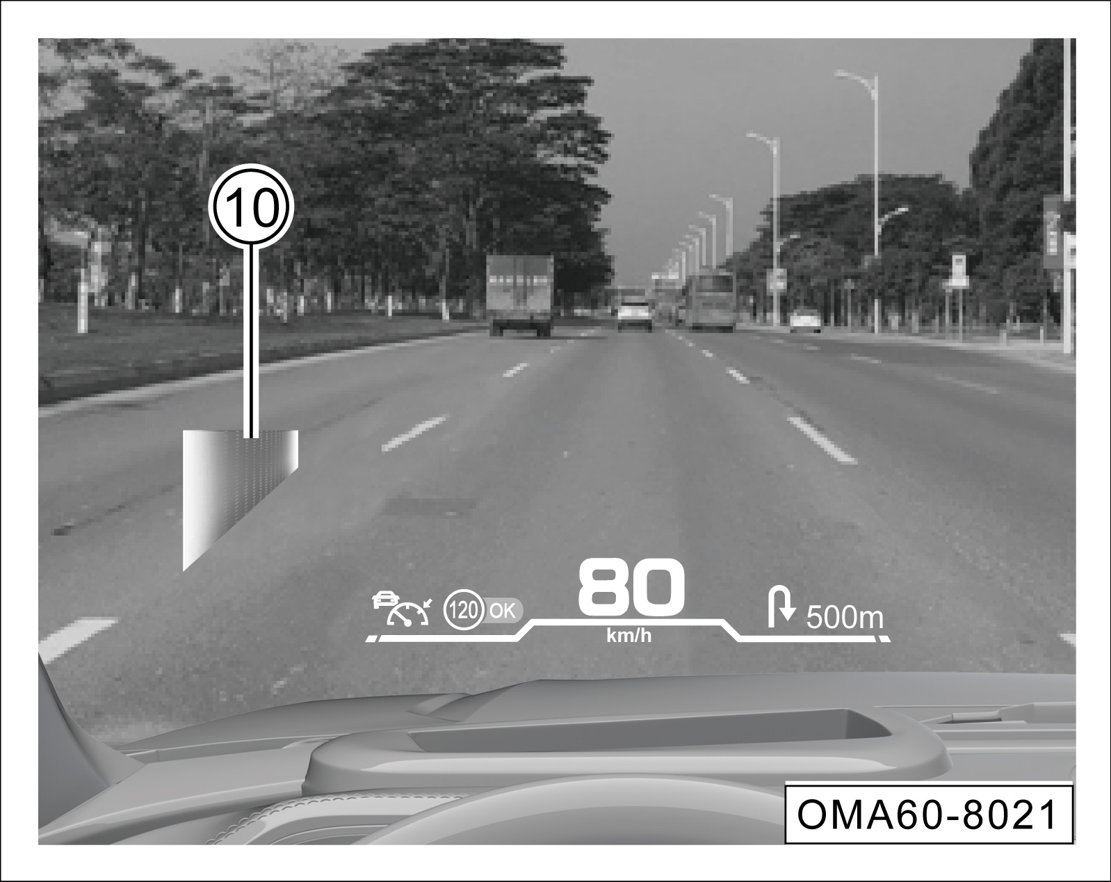 请确保HUD图像亮度适合并置于您舒适的视野区域。