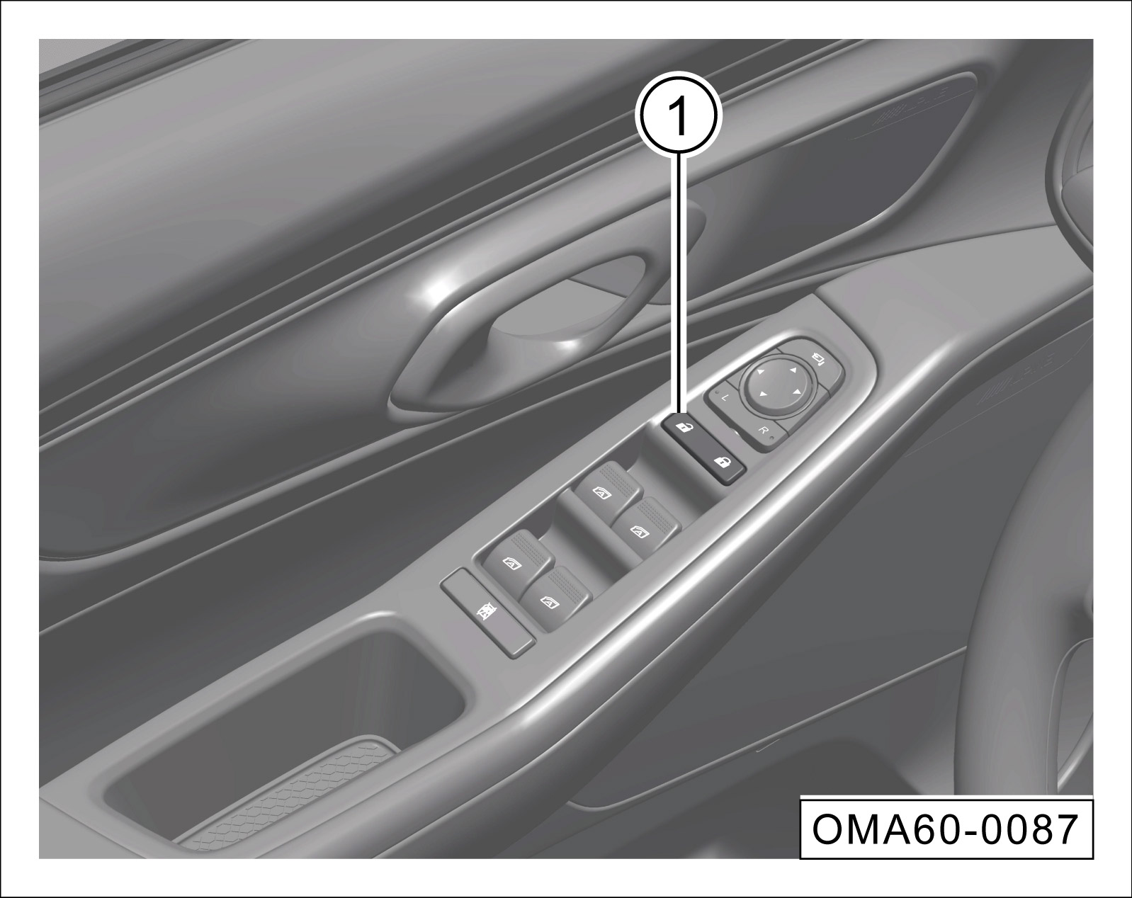 中央门锁按键①可以在车内闭锁和解锁车门: