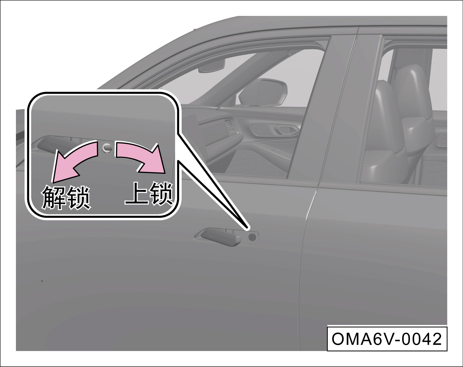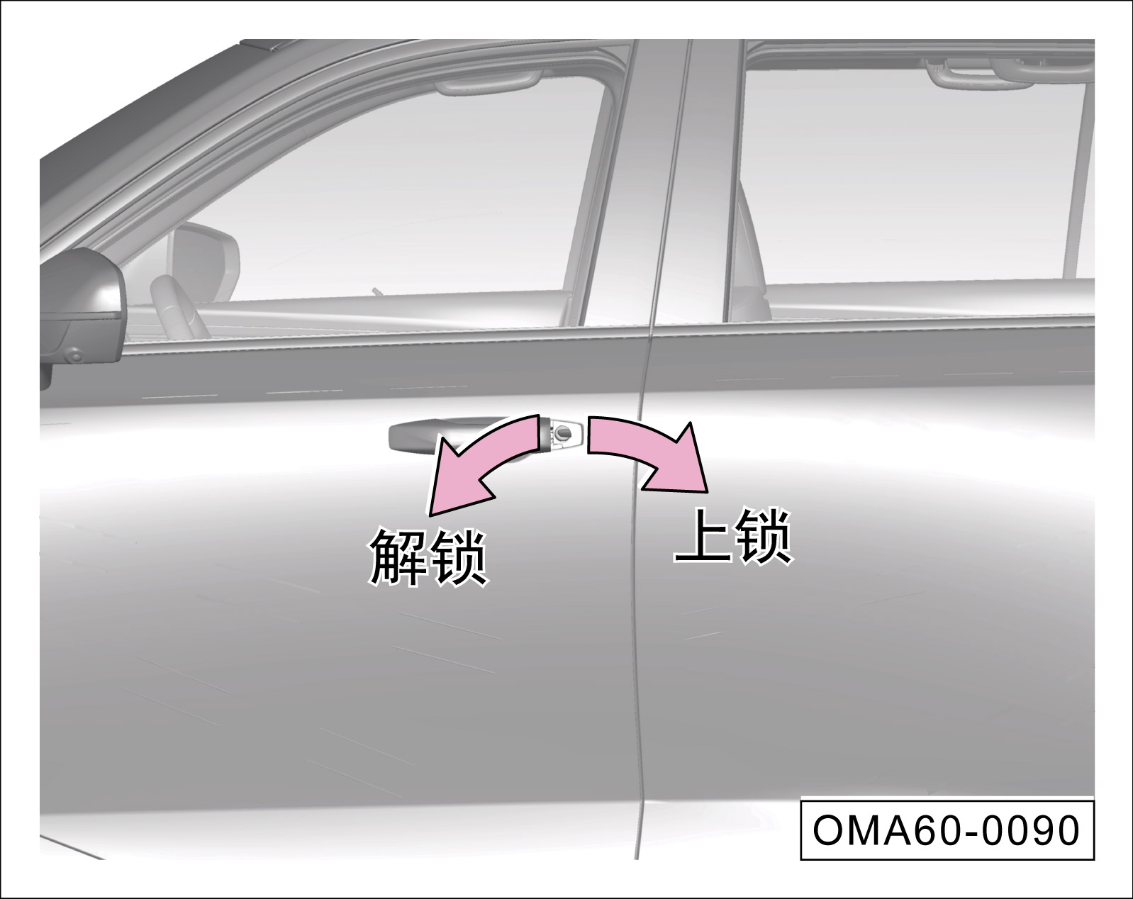 若车辆处于上锁状态,拉动驾驶员侧车门内拉手一次,四门解锁。拉动其他侧车门内拉手一次,仅解锁对应侧车门,再次拉动将解锁四门。