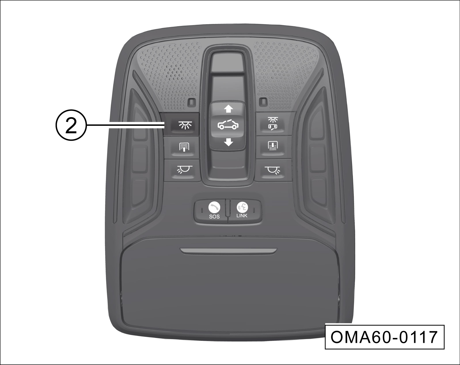 当车顶照明灯不是通过开关②点亮时,按该开关无效。