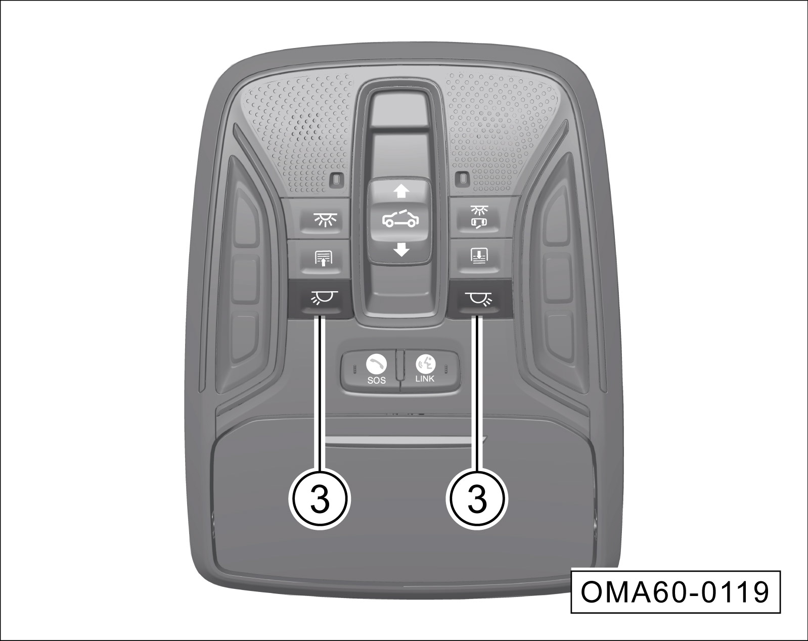 当前车顶照明灯不是通过开关③点亮时,按开关③无效。