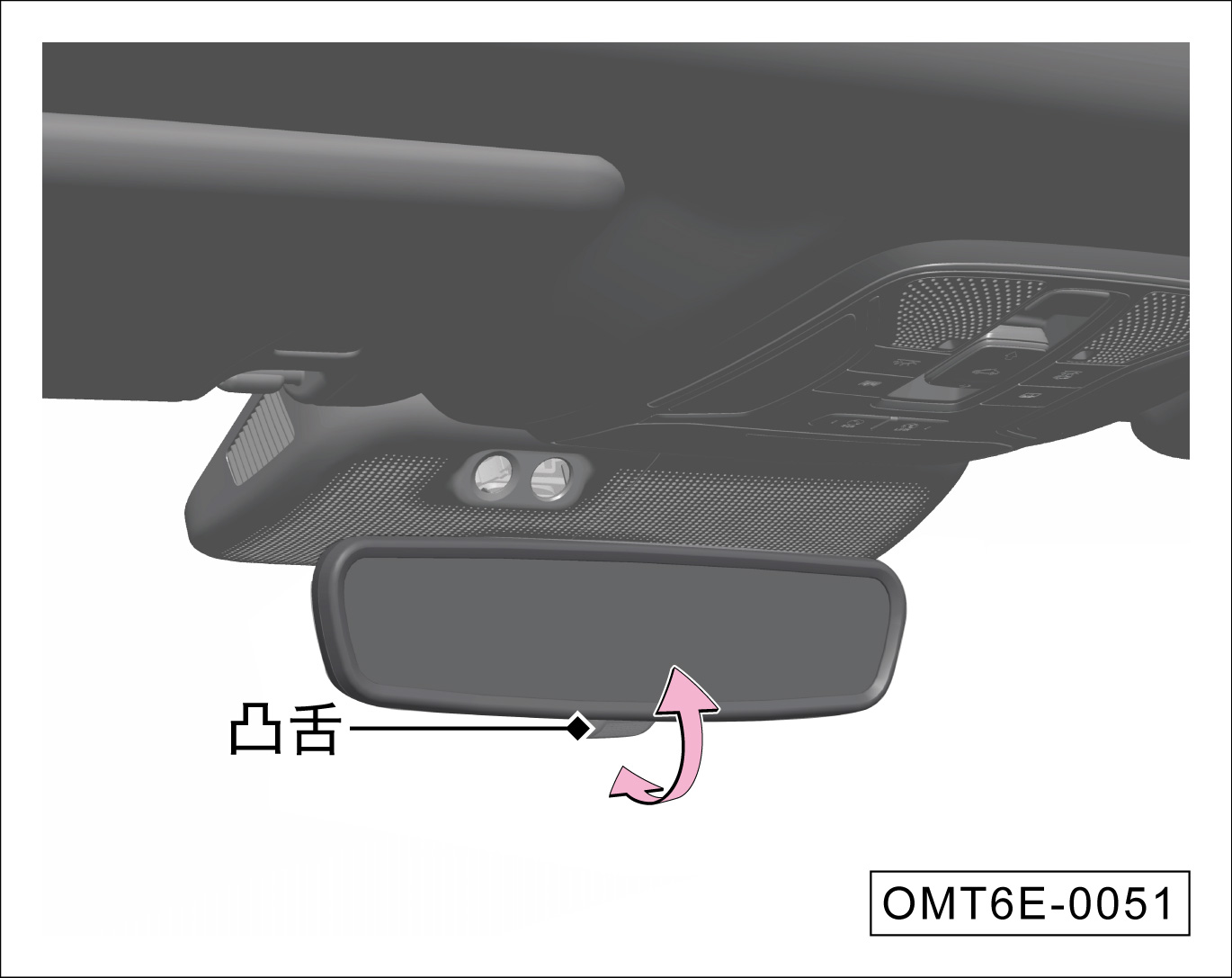 如图凸舌在正常后视角度,向前拨凸舌,可使后方照射进来的反光偏置,达到防眩目功能。