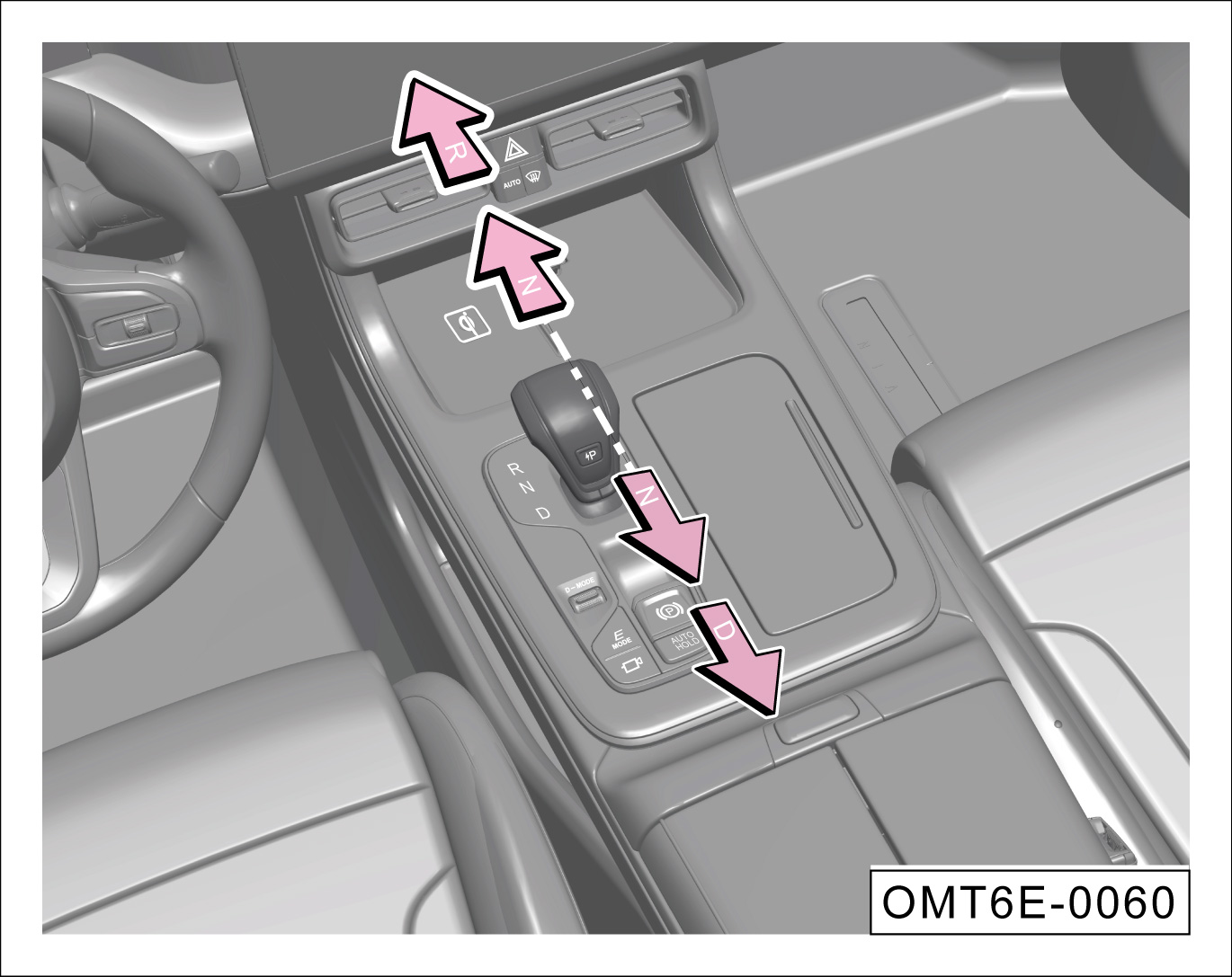 通过上/下拨动驾驶模式(D-MODE)拨钮,可以在“节能模式→舒适模式→运动模式→节能模式......”之间循环切换目标驾驶模式。