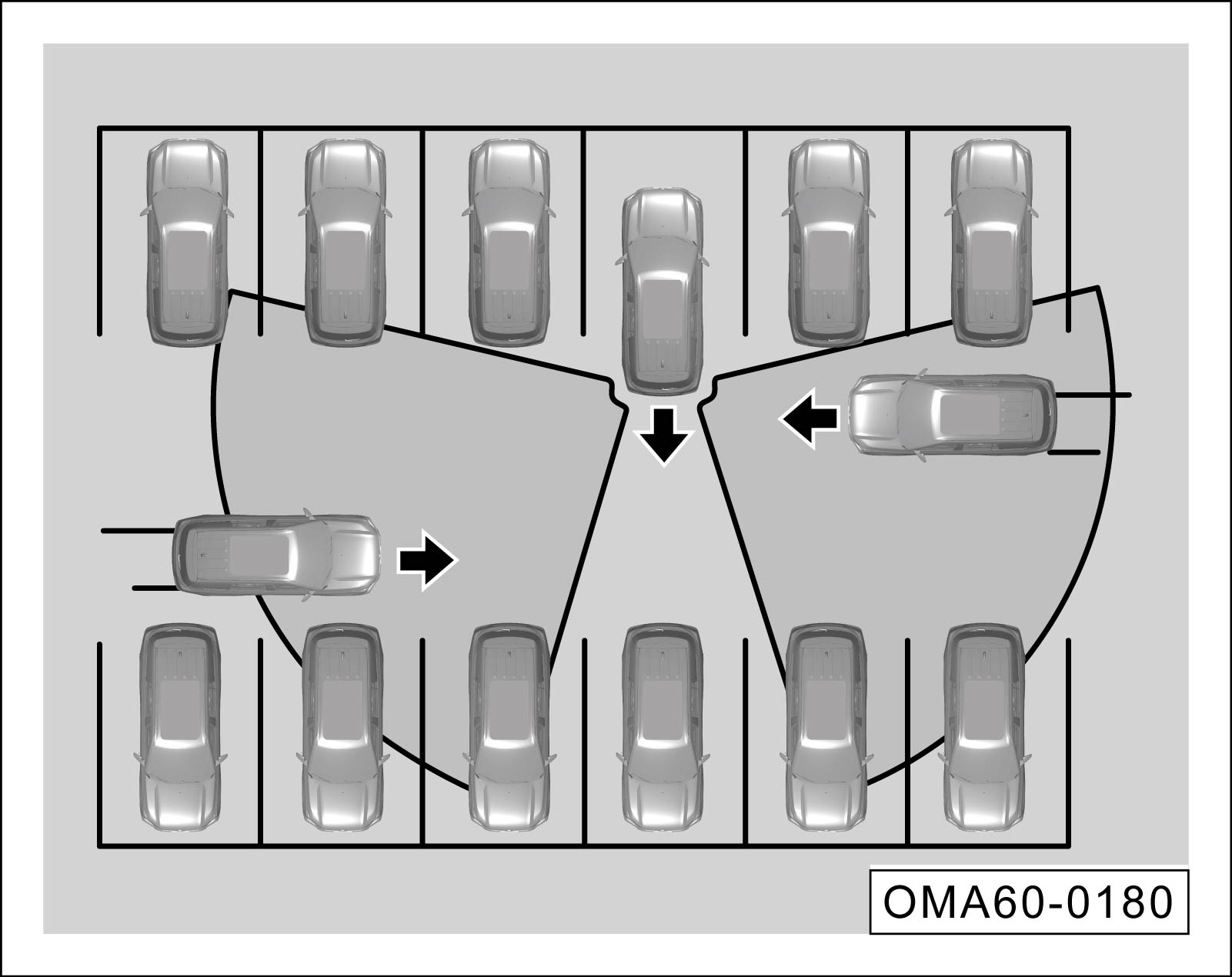 后方车辆穿行警告功能通过安装在车辆后部的盲区雷达,对车辆后部两侧盲区进行探测。车辆倒车时,当探测到有车辆快速接近时,系统会通过外后视镜的可视信号以及全景影像对驾驶员进行提示。